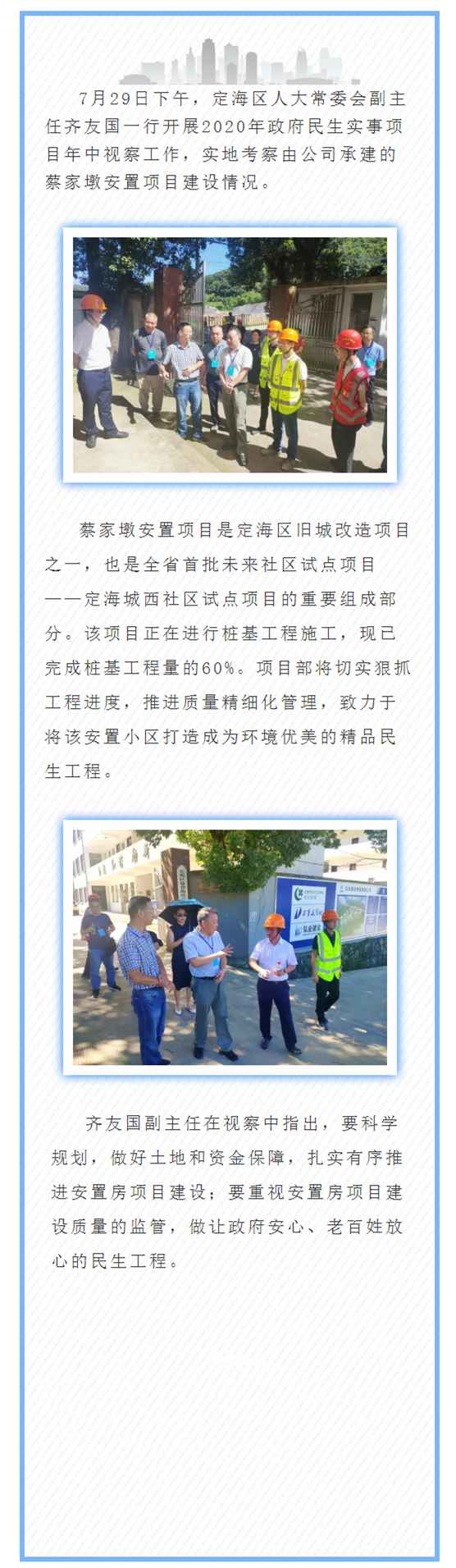 区人大领导视察未来社区蔡家墩安置项目建设情况