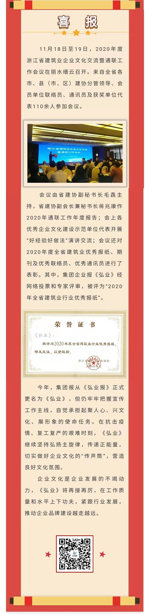 《弘业》荣获2020年全省建筑业行业优秀报纸