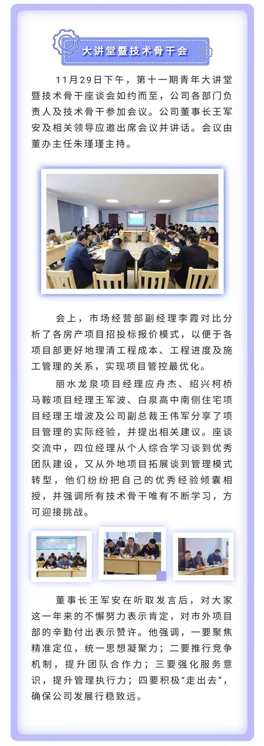 统一思想凝聚力 行稳致远发展企业 |公司召开第十一期青年大讲堂暨技术骨干座谈会