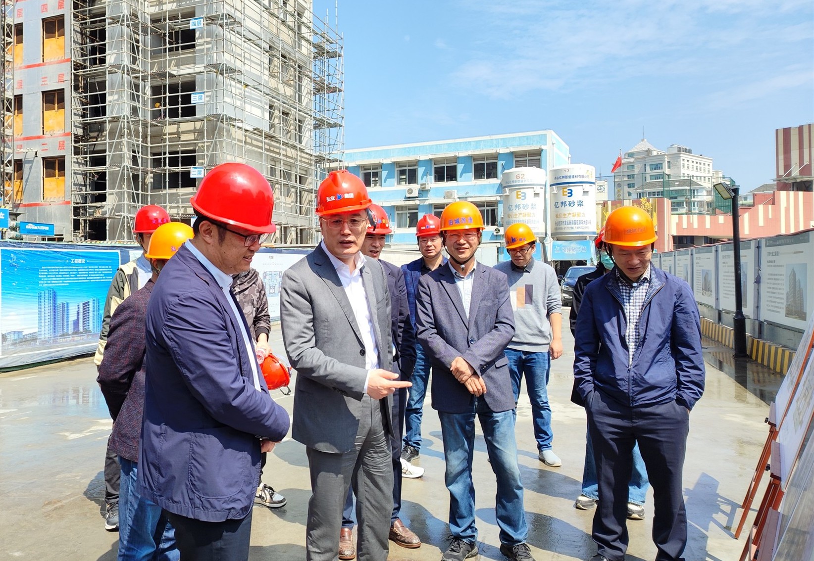 丁伟民一行深入现场,详细了解项目建设进度及安全生产管理情况,并对工地各类设施设备、作业人员防护等方面安全生产措施落实工作进行重点检查。