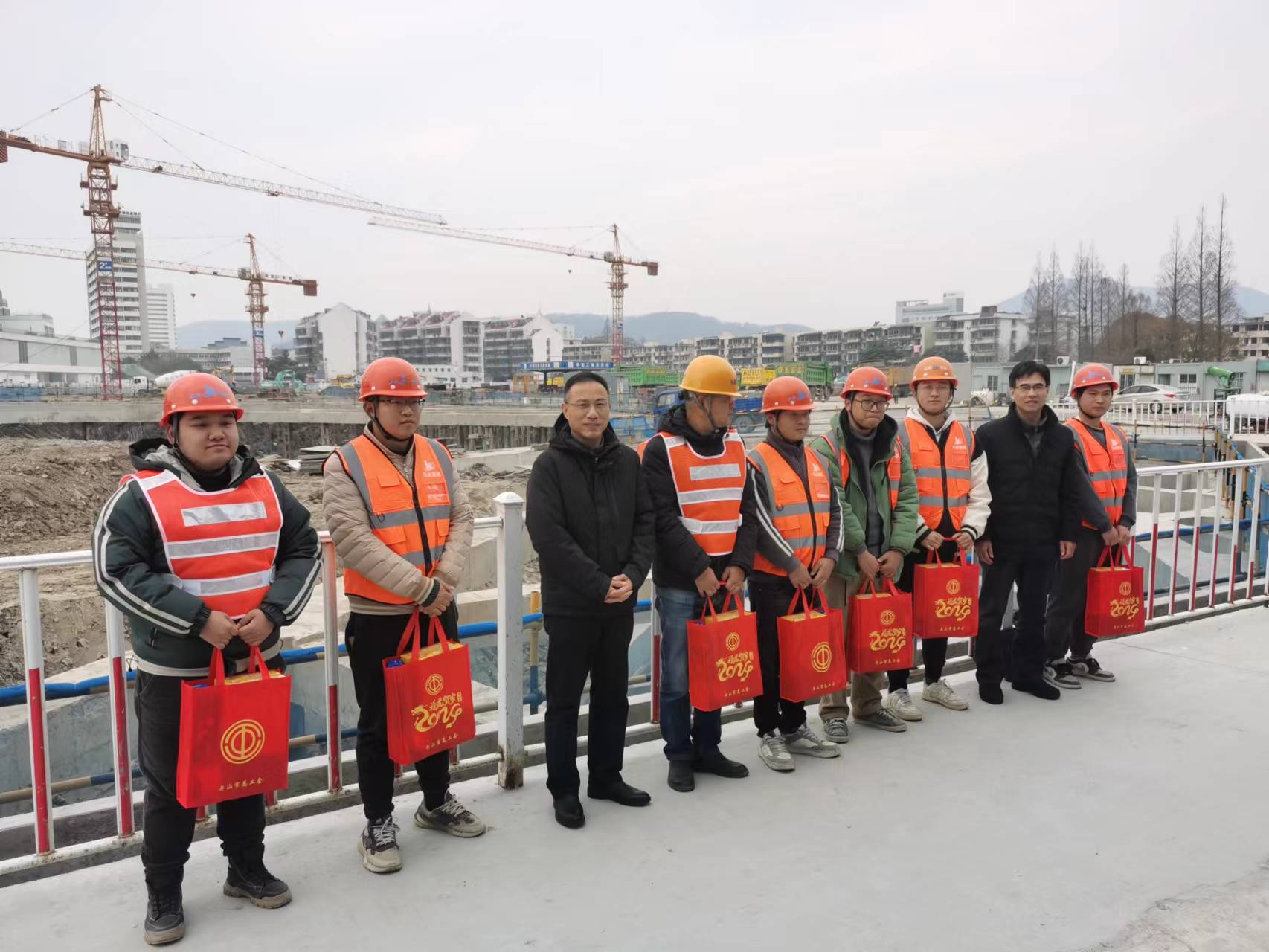 岁寒情暖,温暖到家。2024年1月26日下午,舟山市总工会副主席刘银涛带队到弘业建设集团承建的东门车站北侧安置项目部开展节前走访慰问活动。定海区总工会主席邵启明、副主席舒剑锋参加慰问。